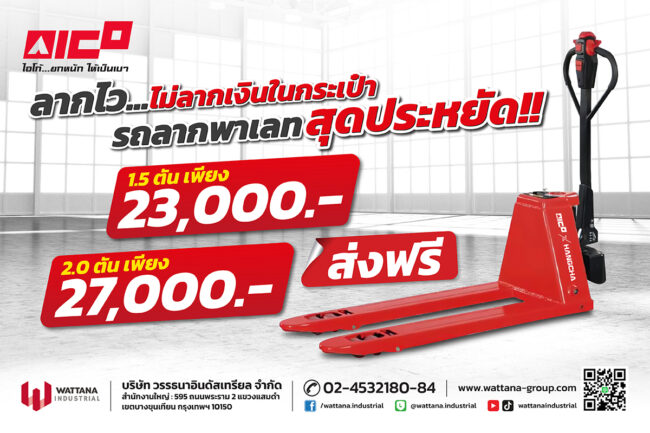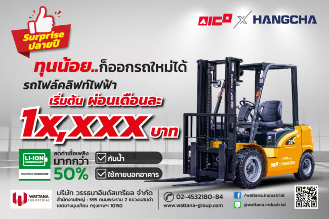 You are here: Home โปรโมชั่นสุดคุ้ม! ซื้อรถโฟล์คลิฟท์ไฟฟ้า (Electric Forklift) AICOxHANGCHA XA Series รับฟรี! รถลากพาเลทไฟฟ้าทันที! หมดเขต ตั้งแต่วันนี้ – 25 ธันวาคม 2568 หรือจนกว่าสินค้าหมด (สินค้าและของแถมมีจำนวนจำกัด) หมายเหตุ เงื่อนไขตามที่บริษัทกําหนด ยกระดับงานคลังสินค้าด้วย [รถโฟล์คลิฟท์ไฟฟ้า] แบตลิเธียม กันน้ำ IPX4 ราคาเริ่มต้น 3xx,xxx บาท โอกาสทอง! ซื้อ 1 ได้ถึง 2 – พร้อมยกระดับธุรกิจของคุณ บริษัท วรรธนาอินดัสเทรียล จำกัด ขอเสนอสุดยอดโปรโมชั่นส่งท้ายปีสำหรับผู้ประกอบการที่มองหา รถโฟล์คลิฟท์ไฟฟ้าประสิทธิภาพสูง และคุ้มค่าที่สุด! เมื่อท่านตัดสินใจลงทุนใน รถโฟล์คลิฟท์ไฟฟ้า AICOxHANGCHA XA Series วันนี้ รับไปเลย ฟรี! รถลากพาเลทไฟฟ้า 1 คัน เพื่อเพิ่มประสิทธิภาพในการเคลื่อนย้ายสินค้าในคลังสินค้าของคุณทันที! ทำไมต้องเลือก [รถโฟล์คลิฟท์ไฟฟ้า AICOxHANGCHA] XA Series? รถรุ่นนี้ถูกออกแบบมาเพื่อตอบโจทย์การค้นหาของท่านที่ต้องการ: รถยกไฟฟ้า กันน้ำ, และ รถโฟล์คลิฟท์ไฟฟ้าแบตเตอรี่ลิเธียม ที่ประหยัดพลังงาน ประหยัดกว่า คุ้มค่ากว่า: ราคาเริ่มต้นเพียง 3xx,xxx บาท! — เปลี่ยนค่าเชื้อเพลิงหลักหมื่นต่อเดือน เป็นเงินผ่อนรถคันใหม่! เพราะใช้ แบตเตอรี่ลิเธียม สุดล้ำ กันน้ำและทนทาน (IPX4) — ตัวรถมีมาตรฐาน กันน้ำ IPX4 ทำให้สามารถใช้งานได้อย่างยืดหยุ่นในพื้นที่ที่มีละอองน้ำหรือความชื้นสูง เพิ่มอายุการใช้งานของตัวรถ…